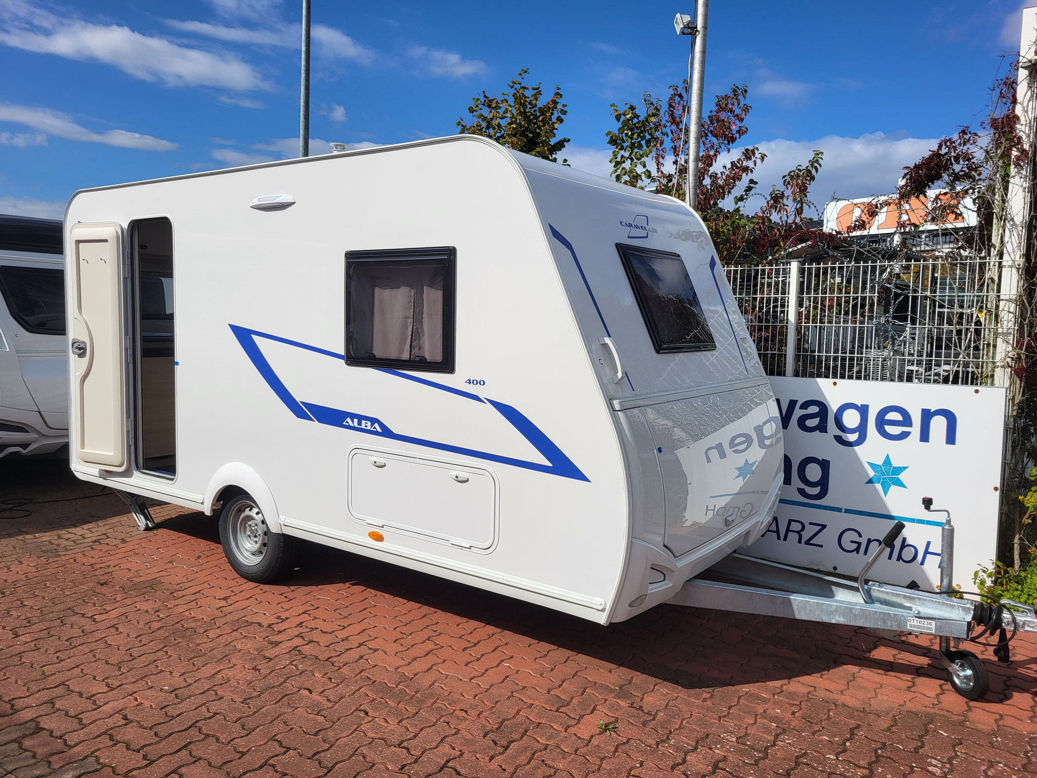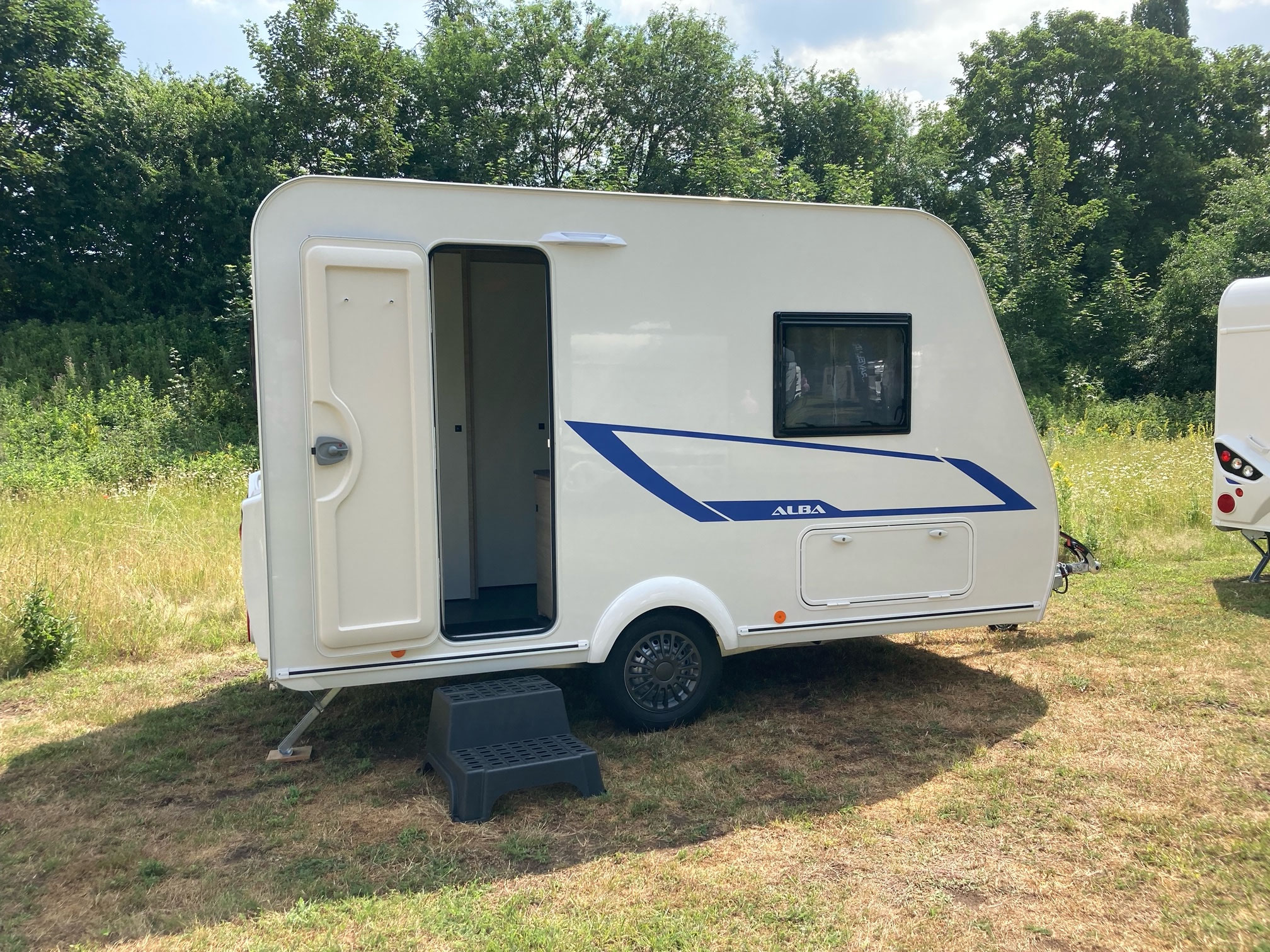 Aufgrund seiner Gesamtbreite von 2,10 m ist der Alba 460 trotz seines Queensbettes, ein kompakter Reisewohnwagen.