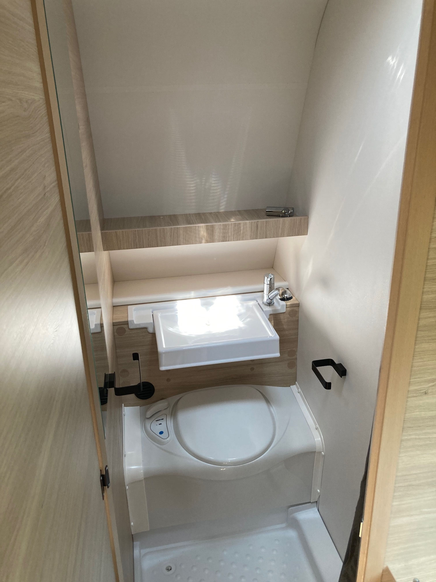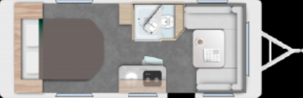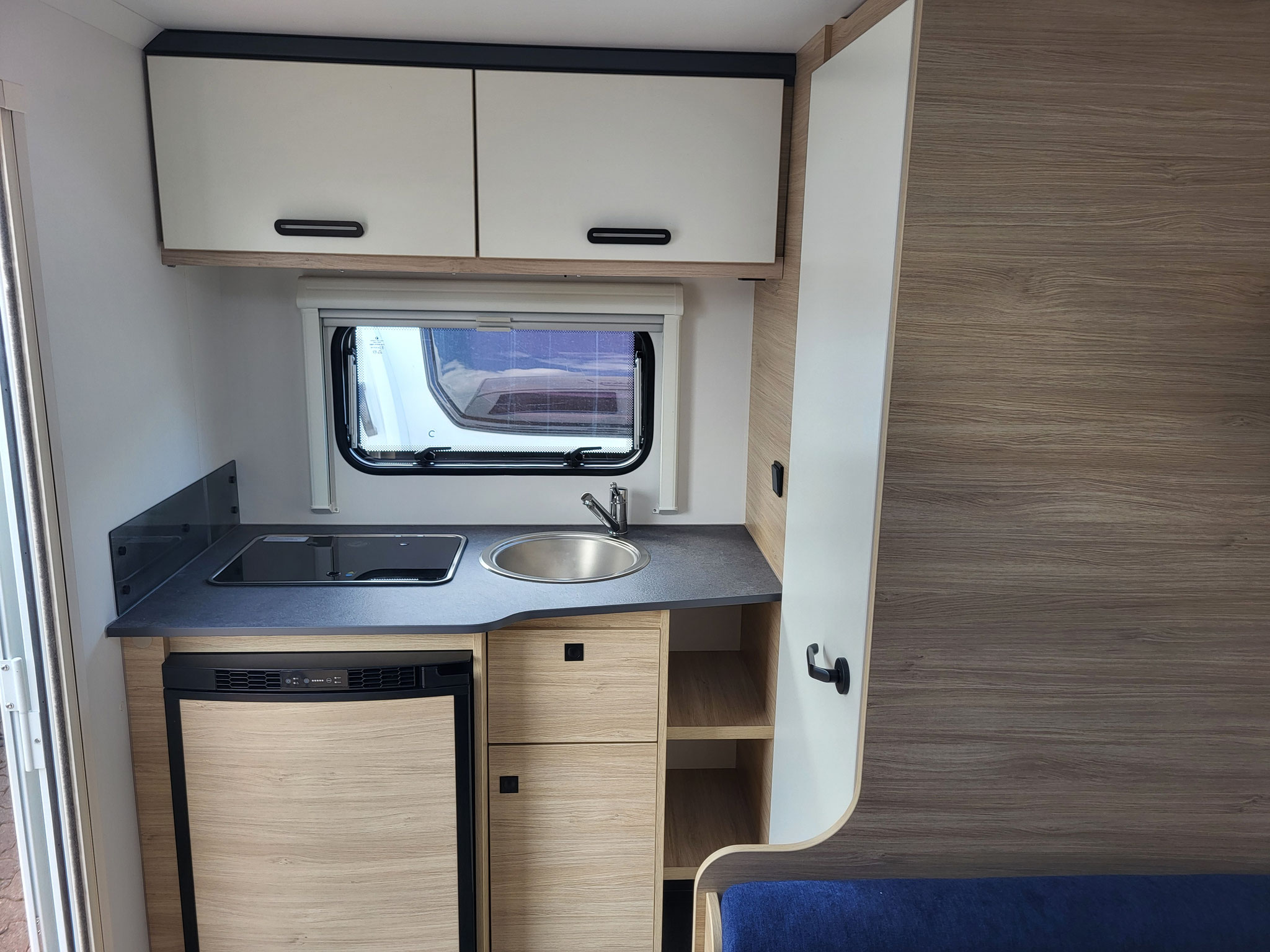 Als Neuheit hat dieser kompakte, leicht zu manövrierende Wohnwagen