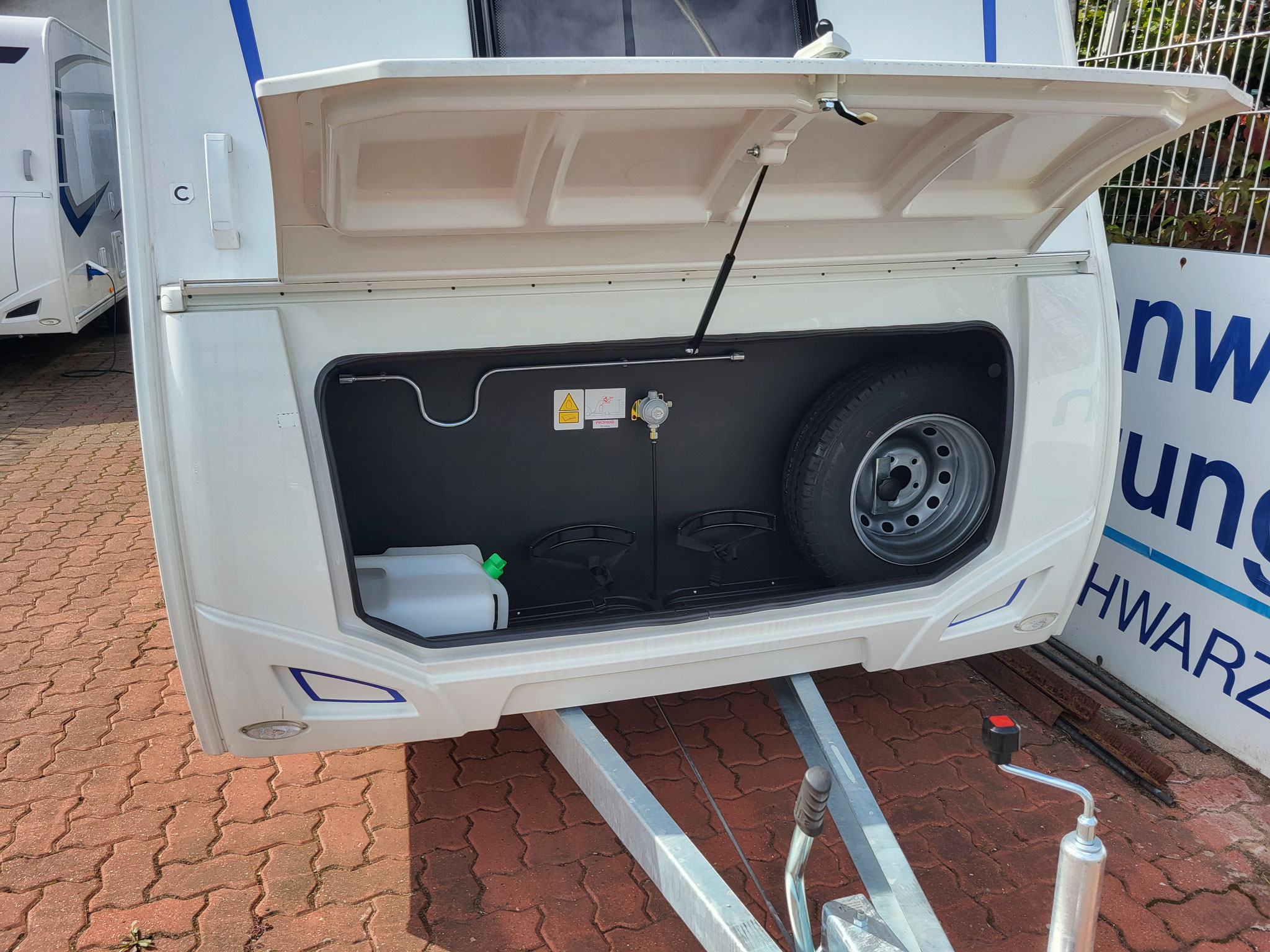 Außen Voll GFK und eine hohe Zuladung machen den 410 Sport-Line gegenüber anderen Wohnwagen auf jeden Fall interessant.