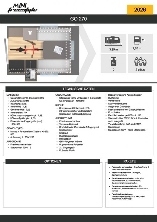 Der MINI GO 270 wurde für den Abenteuerfan mit dem Hang zu spontanen Camping Trips entwickelt und verbindet Komfort und Zweckmäßigkeit in besonders gelungener Weise.